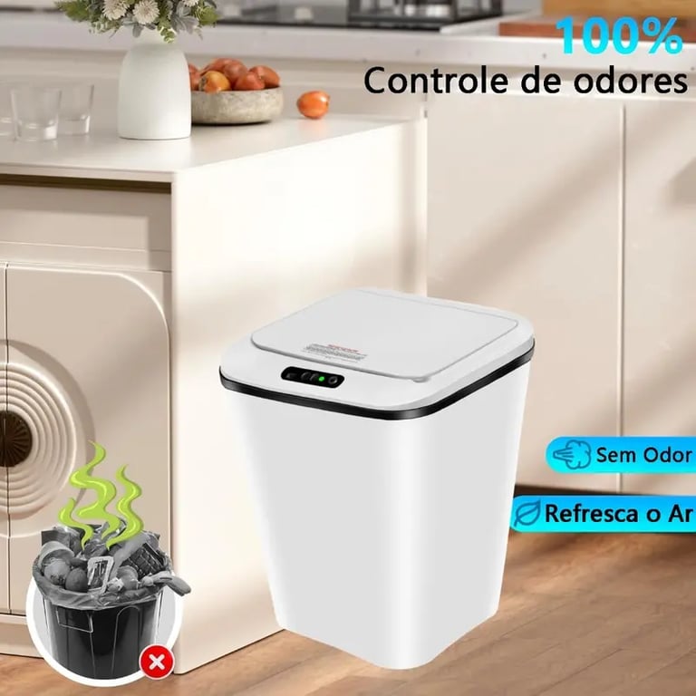 Lixeira com Sensor Automático Inteligente Abre Fácil em Toque Cesto Lixo Casa 16 Litros